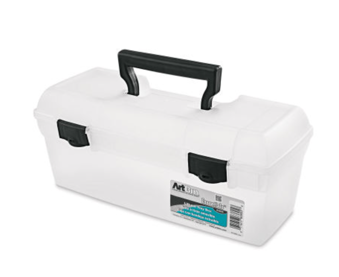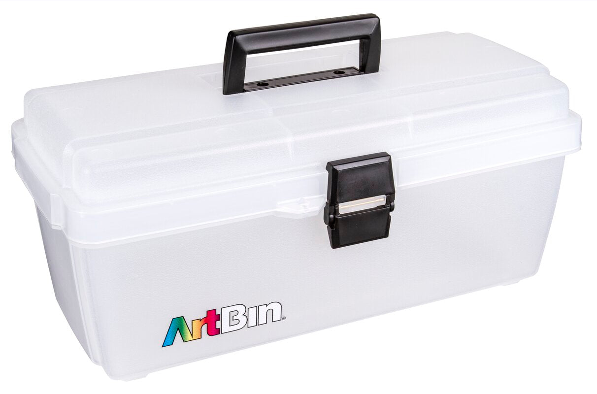 store your art or craft supplies in this sturdy, hinged, two-tiered, plastic storage box. The removable storage tray separates and protects small supplies from the lower area, which is ideally suited for bulky items.