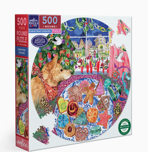 eeboo 500 piece illustrated round puzzles, assorted themes