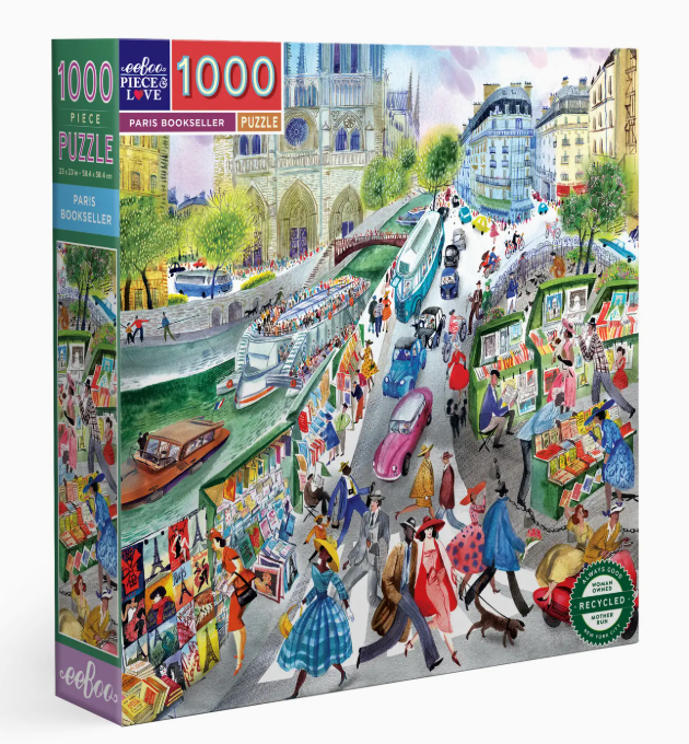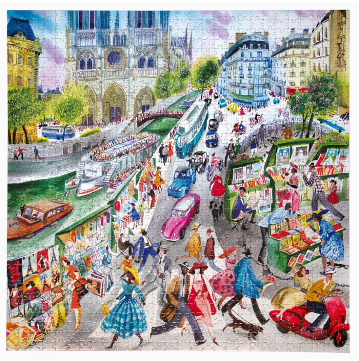 Paris bookseller: Browse by the Seine with this homage to the famous Parisian bouquinistes. Enjoy this contemplative respite in the heart of Paris. Another perfect addition to Piece and Love’s great cities series. A detailed and energetic piece by artist Victoria Krylov.