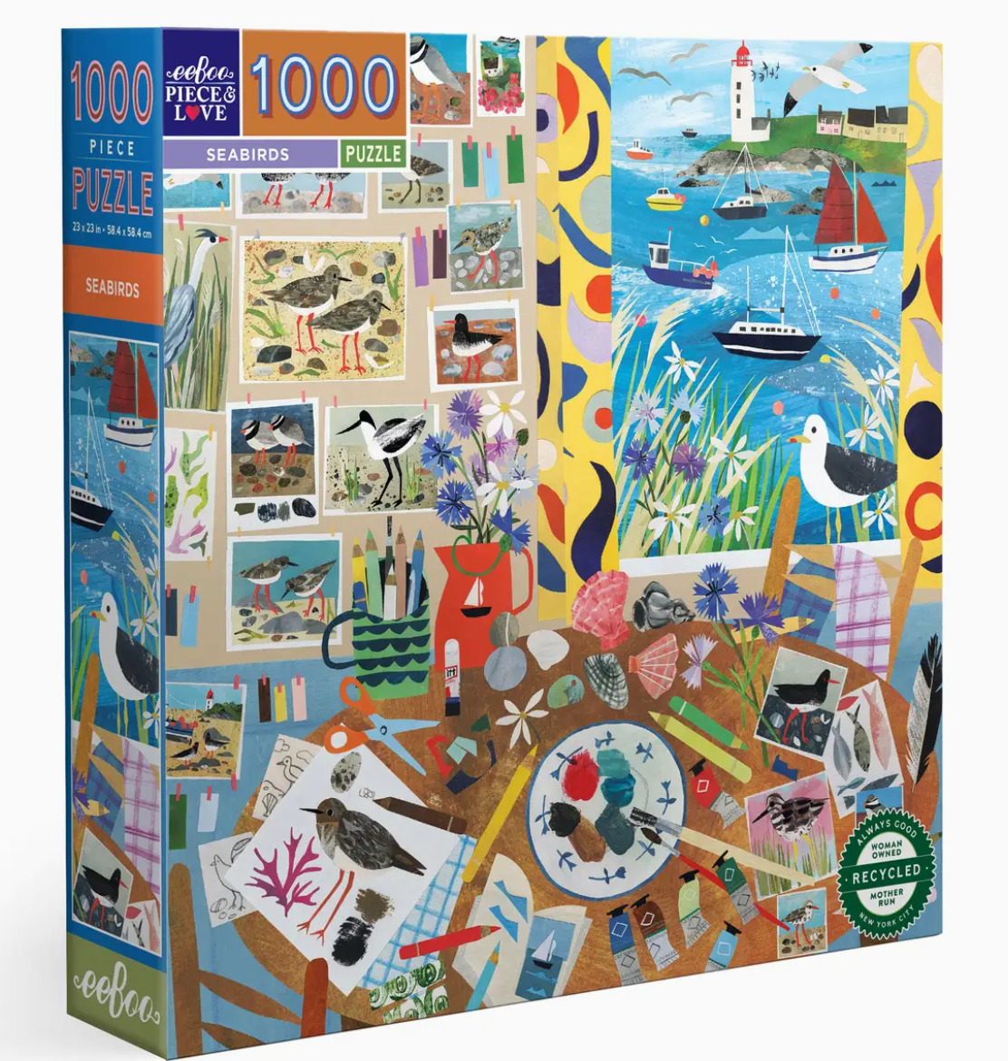 Seabirds: Enjoy the view of the sea surrounded by the pieces of an artist’s day. Smell the sea and count the birds in this engaging piece by artist, Clover Robin.
