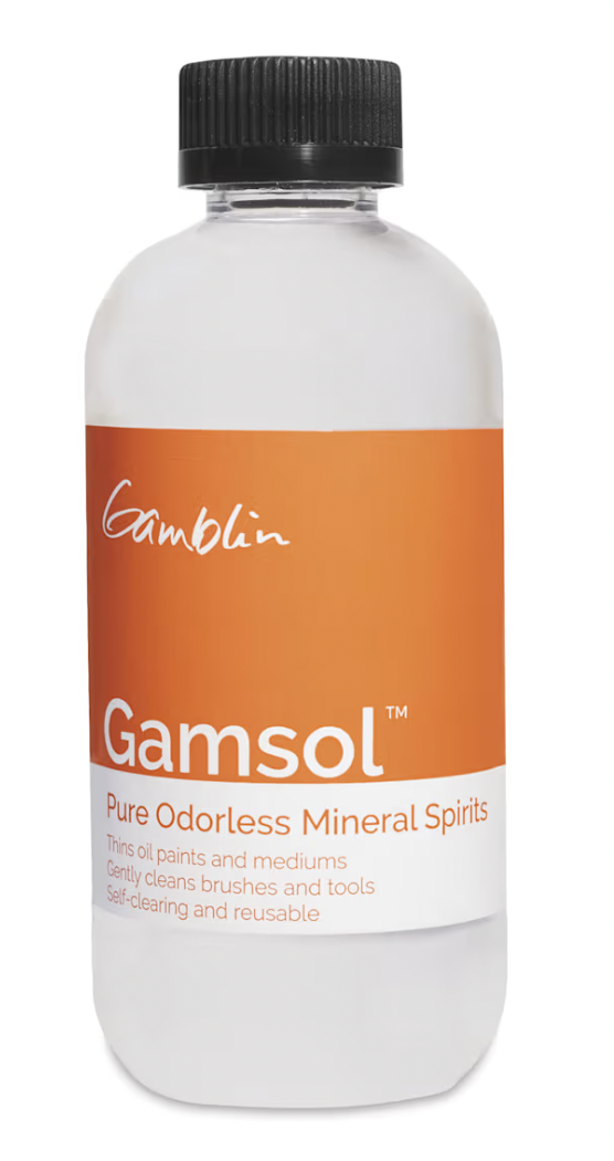 Gamsol is the safest solvent that allows artists to work in traditional and contemporary techniques without compromise. It can be used to thin oil colors and painting mediums, and for general studio clean-up. This 100% pure odorless mineral spirit is reusable and non-toxic when used as recommended.